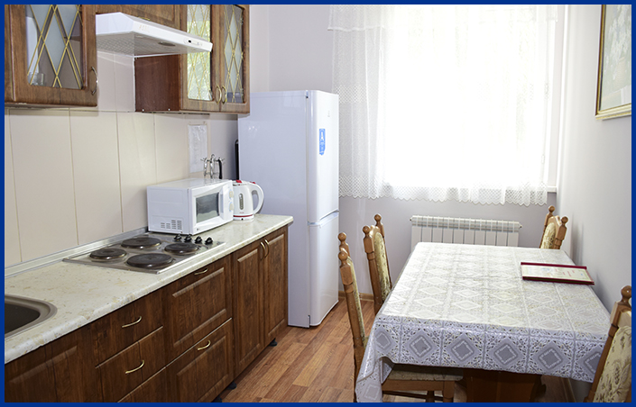 Замена постельного белья и полотенец - один раз в три дня. В кухне: электрическая плита, микроволновка, холодильник, электрический чайник, набор посуды для приготовления еды и столовая посуда. Тапочки и гигиенические наборы не предоставляются. Халаты и фен предоставляются за дополнительную плату.